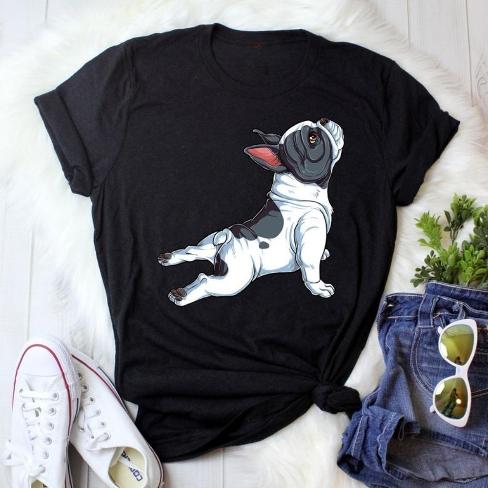 Kawaii French Bulldog Yoga Woman T Shirt Woman Man Summer Fashion Casual Cotton Graphic T Shirts Streetwear Tops Tee