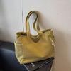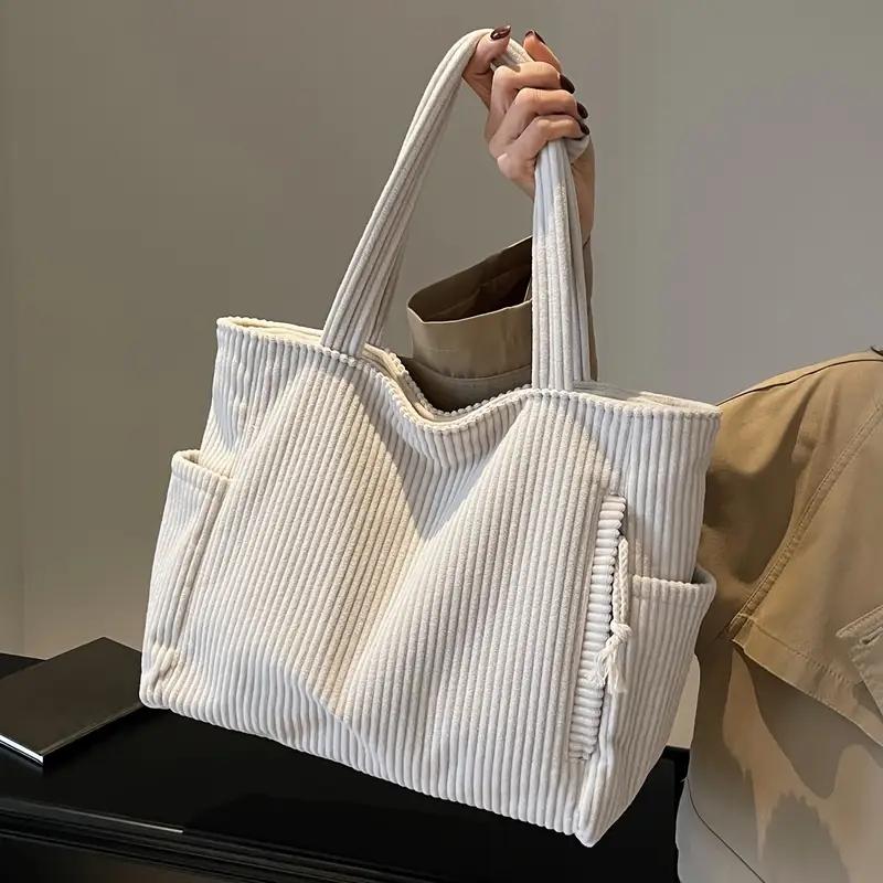Women Corduroy Tote Bag with Zipper Closure Casual Multi Pocket Handbag Large Capacity Fixed Shoulder Strap Commute Shoulder Bag