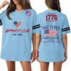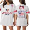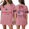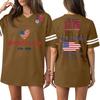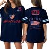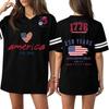 Damska Codzienna Modna Koszulka Sportowa z Dekoltem V z Nadrukiem na Dzień Niepodległości Krótkim Rękawem Top