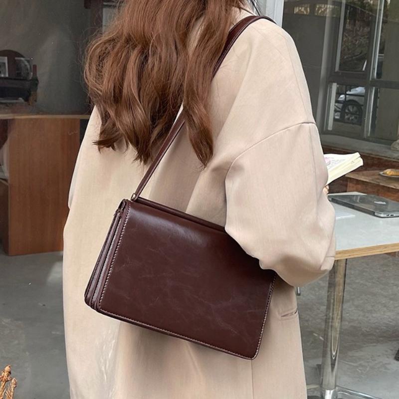Vintage Pu Leather Women Shoulder Bag Small Handbags Solid Color Square Ladies Armpit Bag Fashi Simple Female Clutch Purses