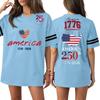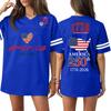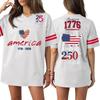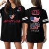 Damska Codzienna Modna Koszulka Sportowa z Dekoltem V z Nadrukiem na Dzień Niepodległości Krótkim Rękawem Top