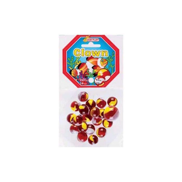 Sachet 20 billes verre CLOWN + 1 calot Bille 25 mm - KIM'PLAY - Mixte - A partir de 3 ans
