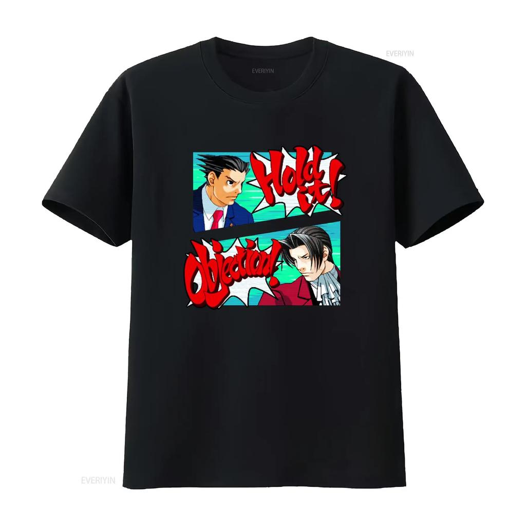 Ace Attorney Phoenix Wright Objection Hold It Koszulka do druku vintage Sprana Miękka Rozciągliwa Oddychająca Wszechstronna