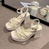 Summer Women's Sandals Elegant Ankle Strap Solid Color Square Toe Sandales Shoes Fashion Platform Black White Heeled Sandalias