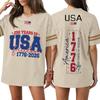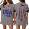 Damska Codzienna Modna Koszulka Sportowa z Dekoltem V z Nadrukiem na Dzień Niepodległości Krótkim Rękawem Top