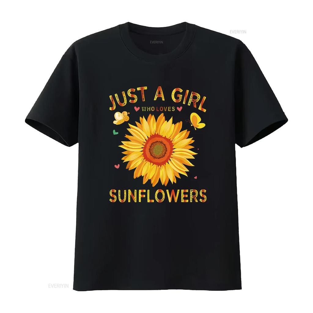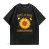 Fashion Sunflower T Shirt For Women Crewneck Just A Girl Who Loves Sunflowers Black vintage Washed Breathable Unisex