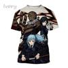 Jujutsu Kaisen Koszulka do druku 3D Moda Anime Okrągły dekolt Krótkie rękawy Codzienne Koszulki Unisex Odzież męska Koszulki Cosplay