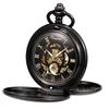 TREEWETO Mechanical Pocket Dragon Roman Bronze with Chain Hand-Winding Watch, Double-Sided Cover, Openwork, Numerals, Skeleton,