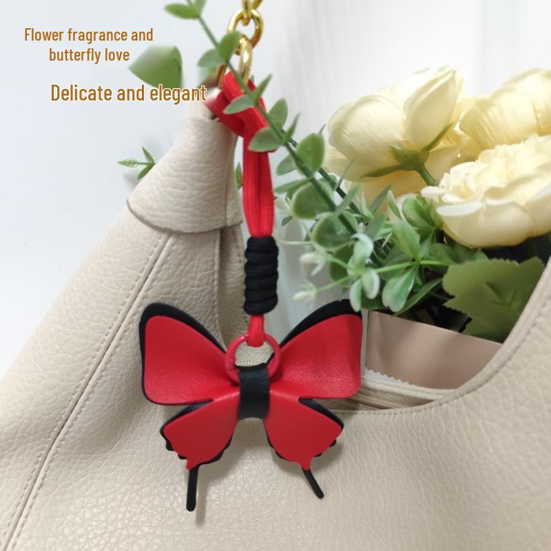 Colorful Leather Butterfly Pendant - Car and Bag Hanging Ornament with Cotton Rope