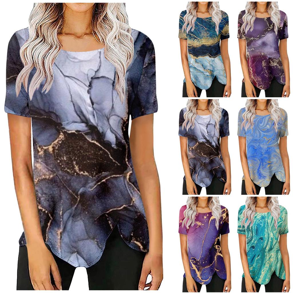 Women's Fashion Casual Temperament Crewneck Loose Printed Short Sleeve T-shirt Top
