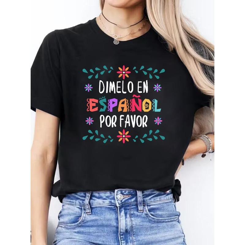 Women'S Casual Crew Neck Short Sleeve T-Shirt - "DIMENO EN ESPAÑOL POR FAVOR" Spanish Letter Print, Lightweight & Breathable Fabric,