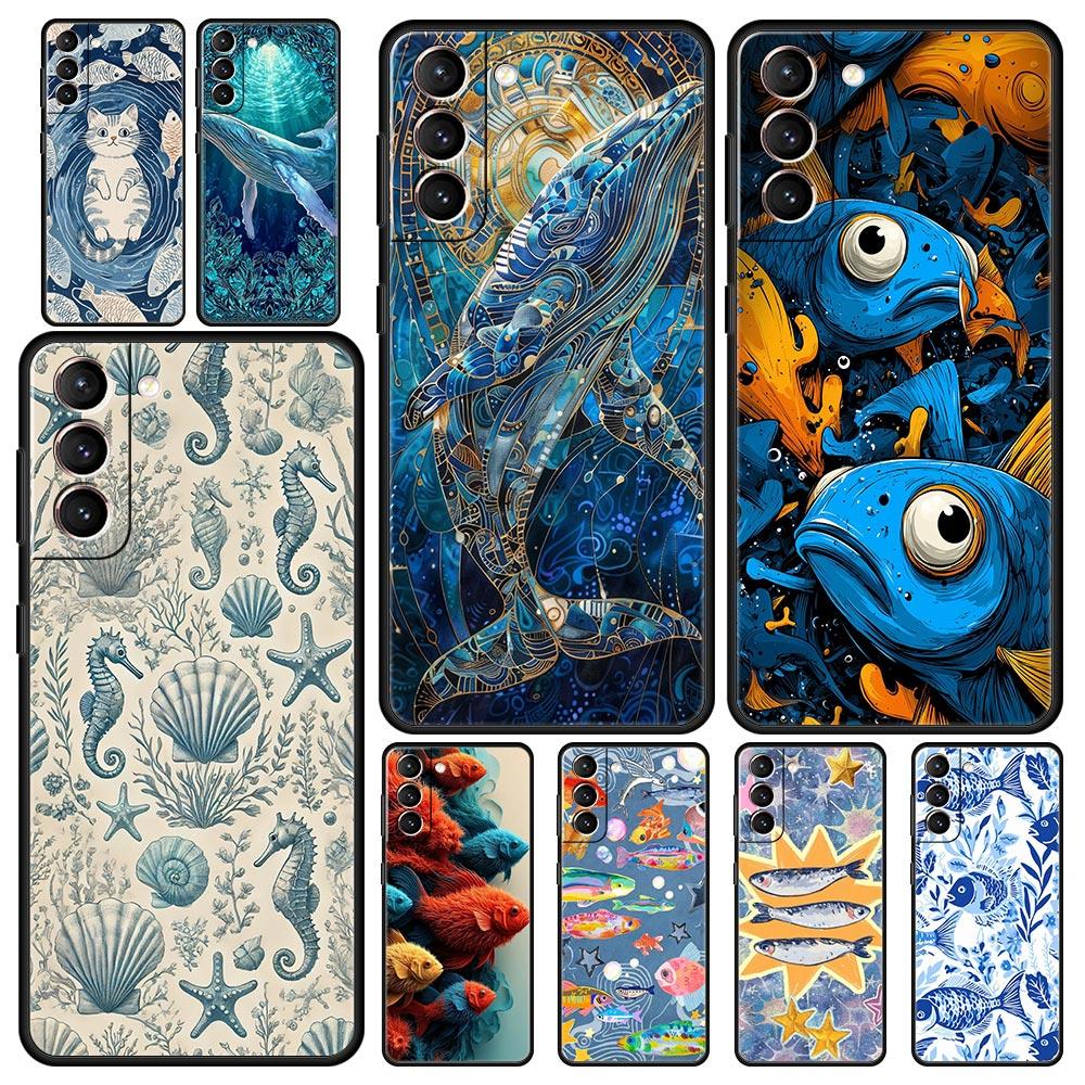 Blue Ocean Fish Phone Case for Samsung Galaxy S26 S25 S24 S23 S22 S20 S21 FE Ultra S25 Edge Plus 5G Soft TPU Cover Fundas Capas