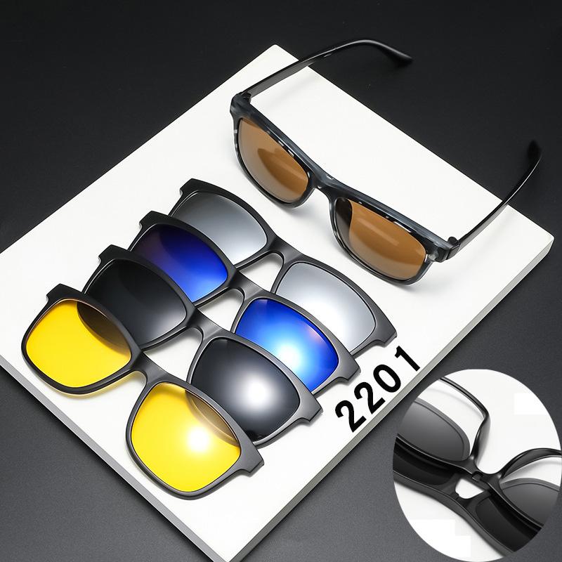 Magnetic Sunglasses Clip And Optical Glasses Frame 6 in 1 Women Men Polarized or Night Vision Multipurpose Eyeglasses Set 2201