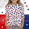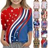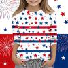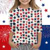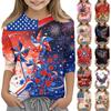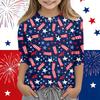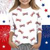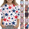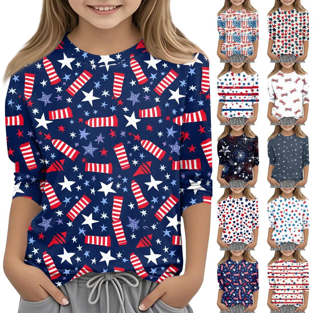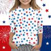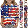 Print Tops For Youth Girls Round Neck 3/4 Sleeves T-Shirts Trendy Tops Outfit Tees Independence Day