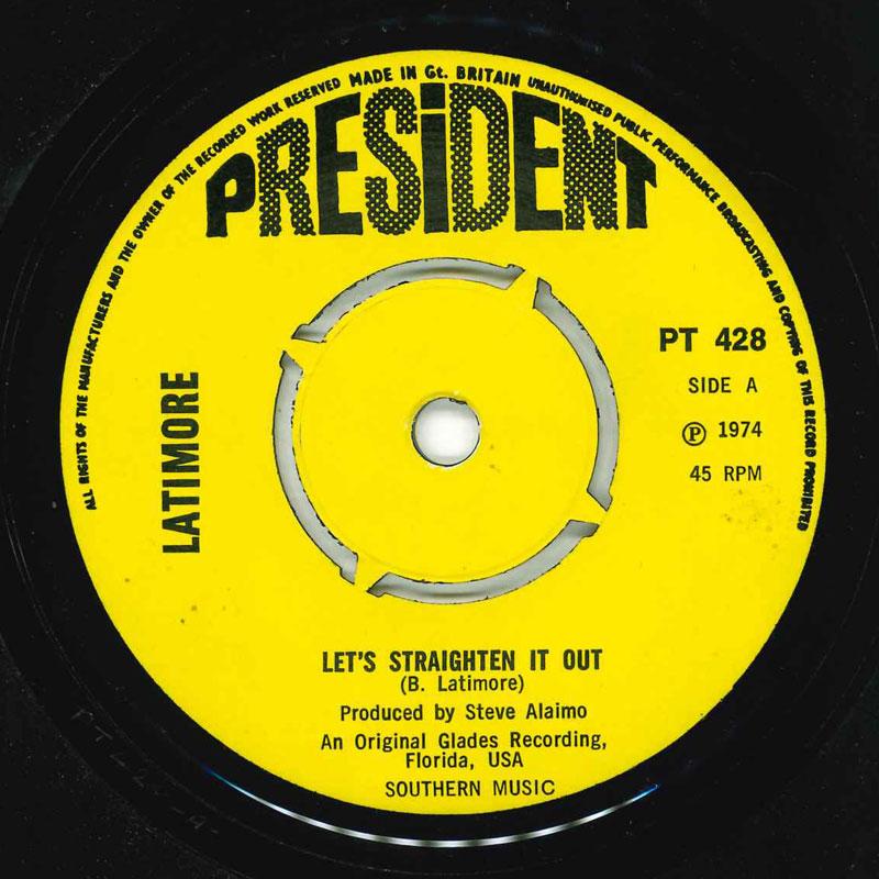 7inch Record LATIMORE Lets Straighten It Out PT428 President Recor 1974 UK SoulFunk Used