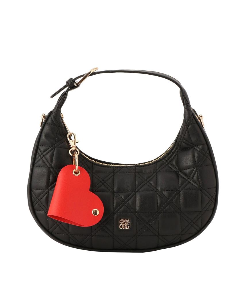 Quilted Bag with Heart Black F [BIS] 2-Way Charm, (01)